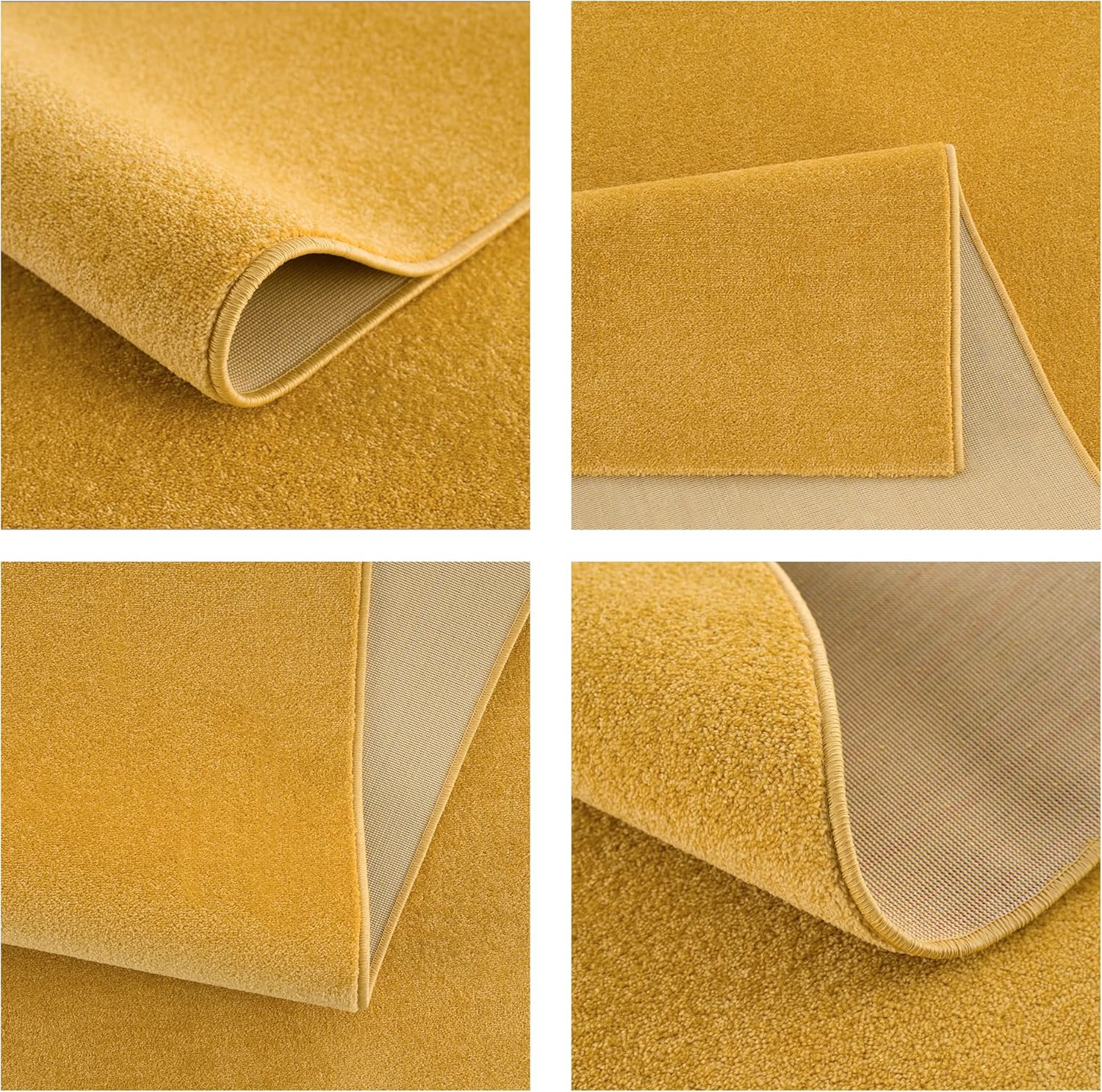 Der Teppich ist super, die Ränder sind gut vernäht, die Farbe ist wunderschön gold-gelb und changiert. Er passt perfekt in unser SuperMario-Kinderzimmer und lässt sich prima saugen. Klare Kaufempfehlung.